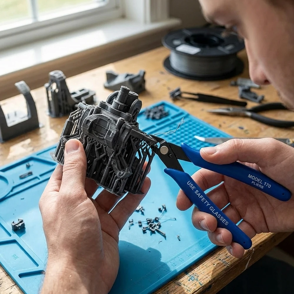 • Usuwanie wsporników (supportów): Precyzyjne odcinanie struktur pomocniczych bez uszkadzania ścianek modelu.